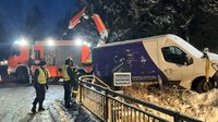 Zur Bergung des Klein-LKW war der Einsatz eines Krans erforderlich. Dieser wurde nachalarmiert und durch die Berufsfeuerwehr Linz bereitgestellt, die uns tatkräftig unterstützte. Auch die Gemeinde Altenberg war vor Ort und sorgte mit dem Winterdienst für sichere Arbeitsbedingungen: Die Einsatzstelle wurde vom Schnee befreit und gestreut, um ein sicheres Arbeiten zu gewährleisten.