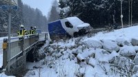 Ein Klein-LKW war aus bisher ungeklärten Gründen von der Fahrbahn abgekommen. Glücklicherweise rutschte das Fahrzeug nicht in den angrenzenden Bach, sondern blieb an einem großen Stein hängen – so konnte Schlimmeres verhindert werden und der Fahrer blieb bei dem Vorfall unverletzt!