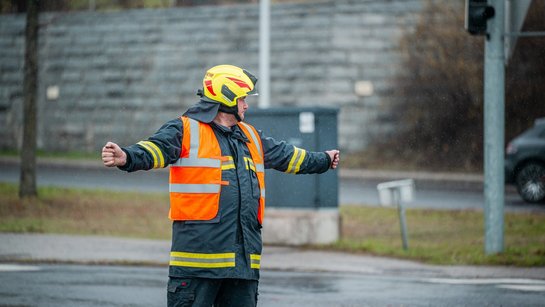 Im praktischen Teil des Lehrgangs hatten die Teilnehmer die Möglichkeit, ihre Fähigkeiten direkt anzuwenden. Sie lernten, wie man den Verkehr an einer Kreuzung effizient regelt und wie man Fahrzeuge sicher an einer Unfallstelle vorbeiführt. Diese praktischen Übungen waren ein wesentlicher Bestandteil des Lehrgangs, um das Verständnis zu vertiefen und die praktischen Fertigkeiten der Teilnehmer zu verbessern.