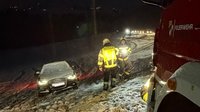 Aufgrund der winterlichen Fahrverhältnisse war ein Fahrzeug von der Fahrbahn abgekommen und im Straßengraben zum Stillstand gekommen.